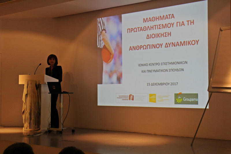 Η Διεύθυνση Ανθρώπινου Δυναμικού της Groupama Ασφαλιστικής διοργάνωσε εκδήλωση για φοιτητές με θέμα «Αναπτύσσοντας επαγγελματικές δεξιότητες μέσω του αθλητισμού», την Παρασκευή 15/12/2017 στο Ιωνικό Κέντρο στην Πλάκα, σε συνεργασία με το Οικονομικό Πανεπιστήμιο Αθηνών και με κεντρικό ομιλητή τον βετεράνο διεθνή καλαθοσφαιριστή Γιώργο Σιγάλα.
